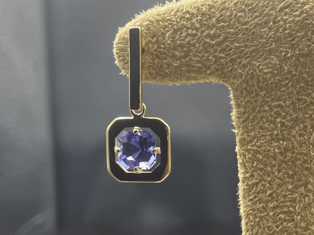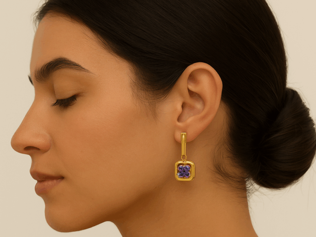 BOUCLES D’OREILLES OR JAUNE AVEC SPINELLES MAUVES