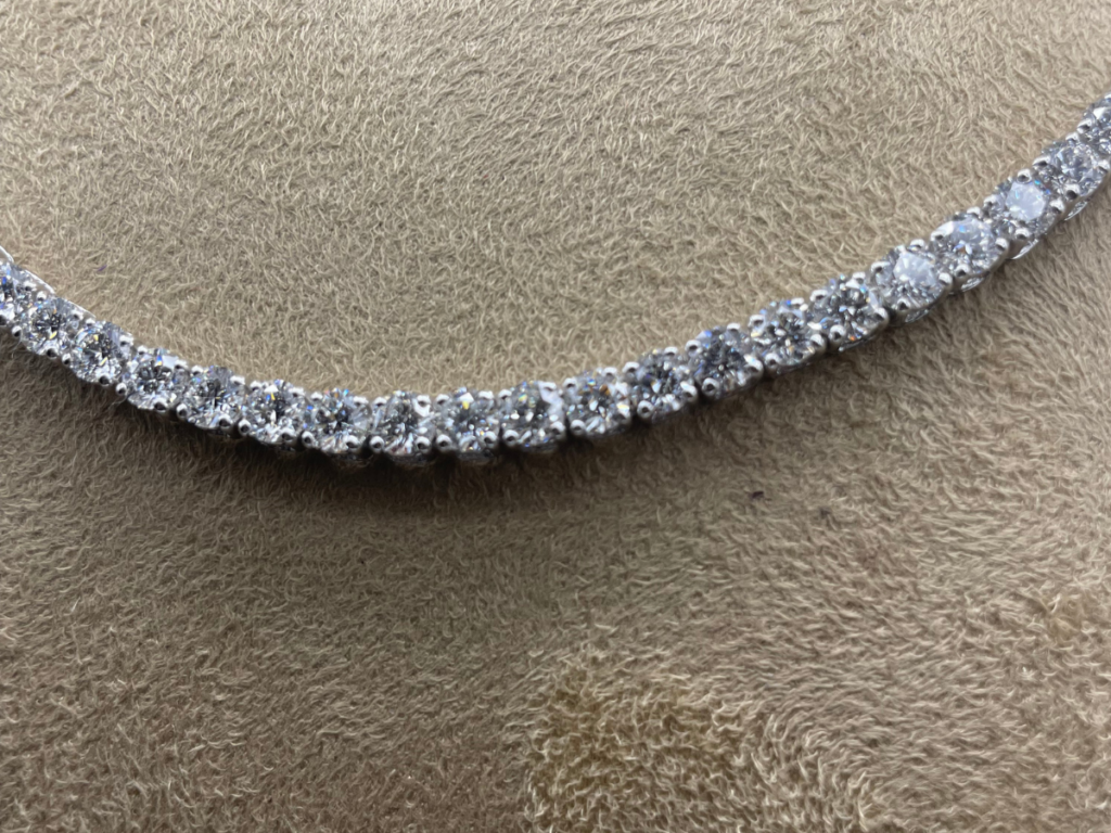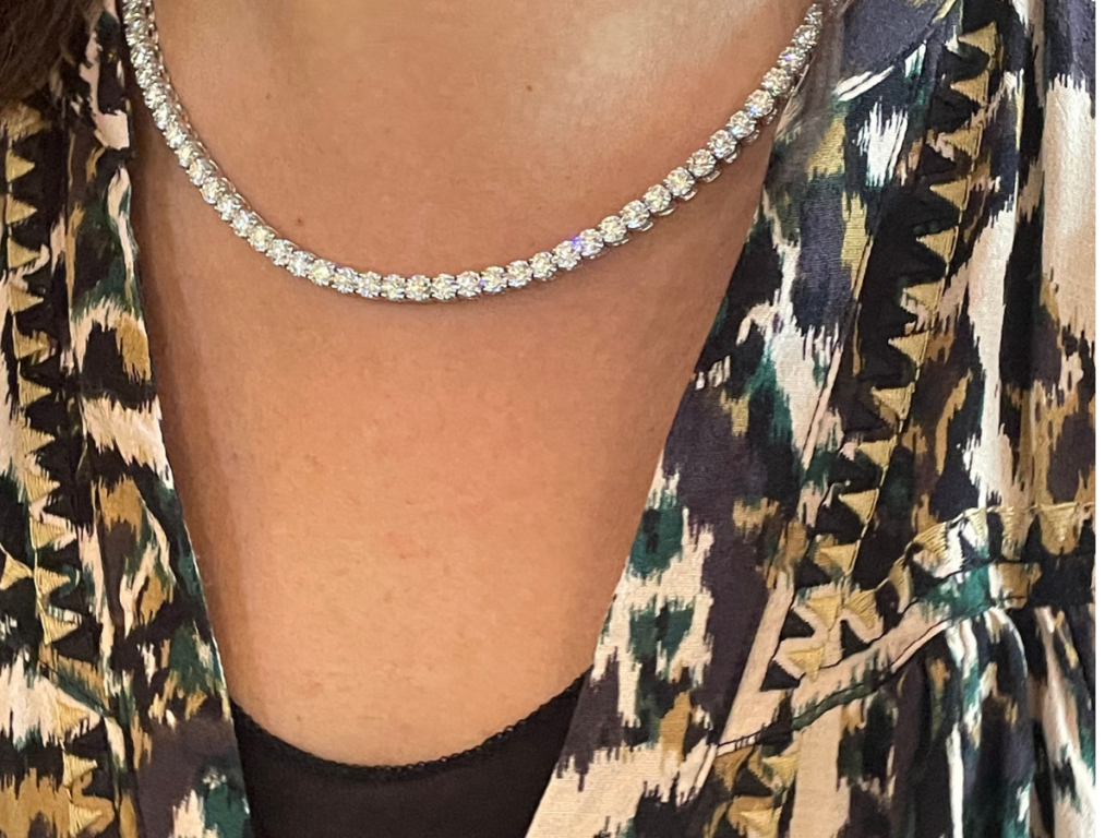 Chaque diamant est contrôlé et vérifié HRD, garantissant l’authenticité et la qualité des pierres. Le sertissage précis permet à chaque diamant de capter la lumière et d’offrir une brillance continue caractéristique du collier rivière.